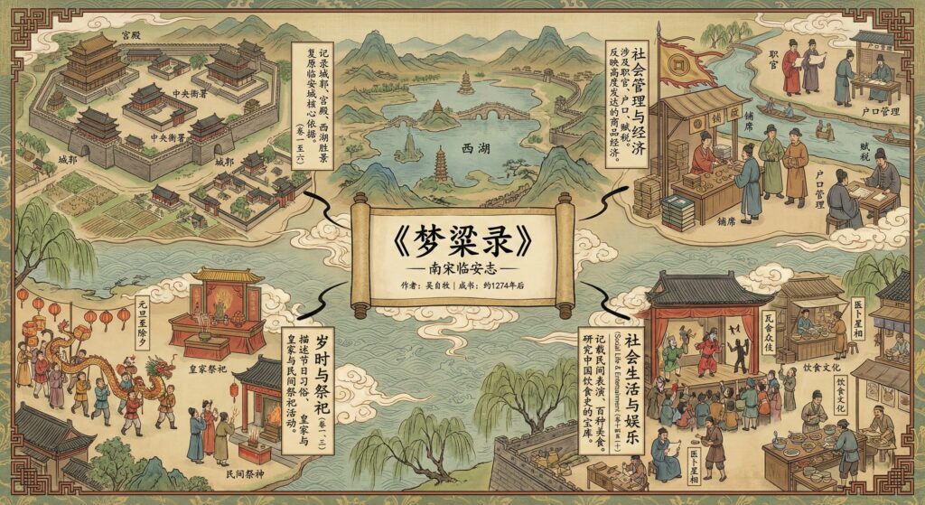 此书主要追忆南宋时期临安的繁盛景象,内容涵盖: